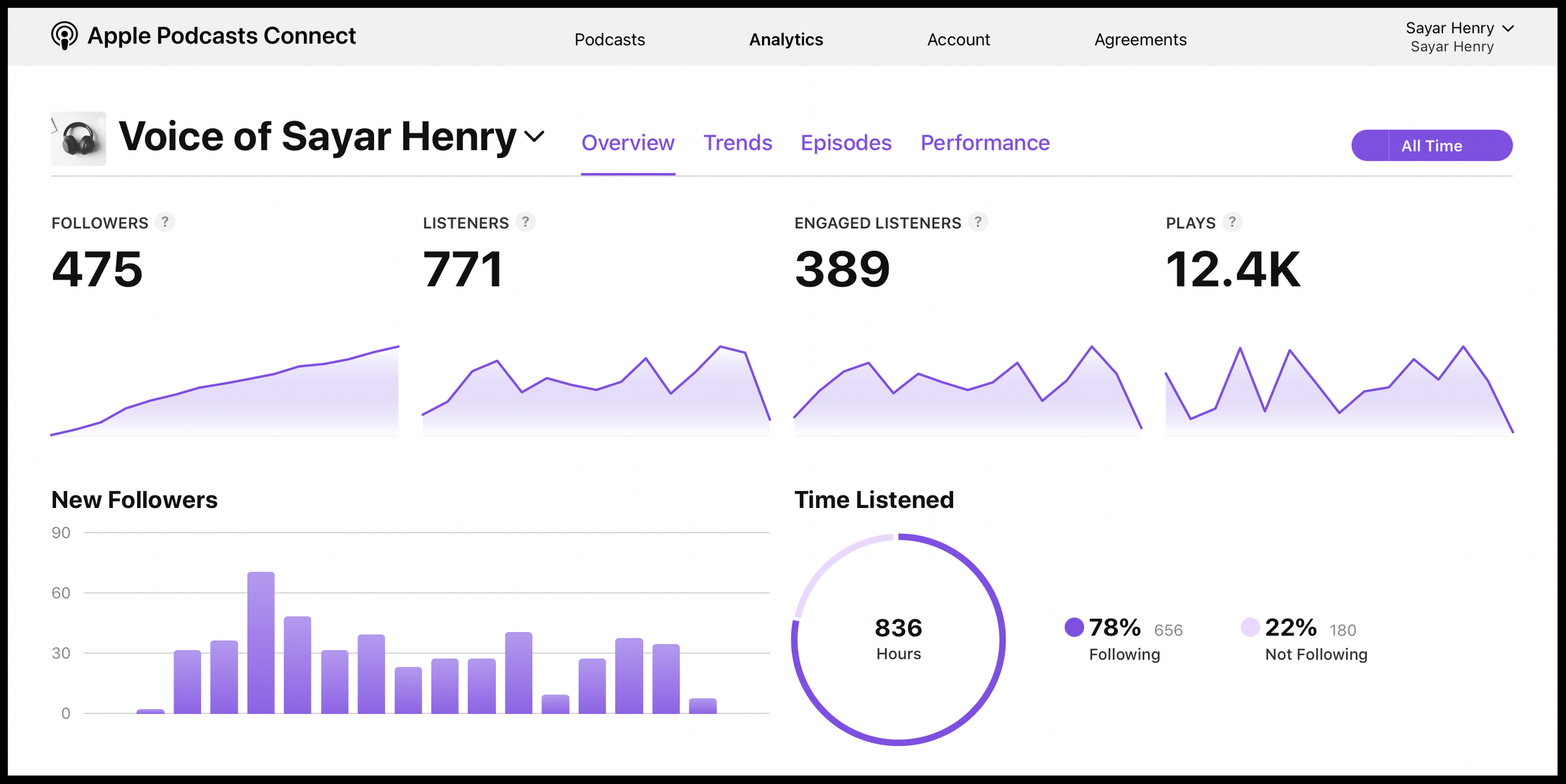 By looking at these figures, one can conclude with confidence that Voice of Sayar Henry is not just another podcast that people could forget once they have the time to sit down and properly tune in to an episode. The topics and sound design of each episode are meticulously crafted to make it worthwhile for listeners to revisit the old episodes multiple times. Though the fanbase at the moment is not very big, the podcast is on its way, at its own pace, to the top 5% of all the podcasts in the world. It is made to grow, and designed to last.